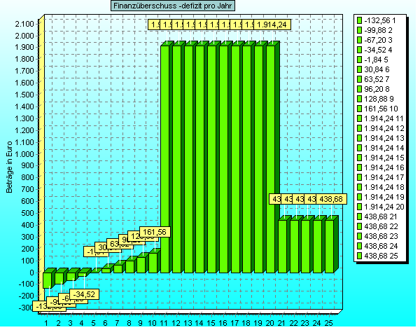 Sieht doch sehr gut aus ! Ich zahle ca. 300 Euro in den ersten 5 Jahren und ab dann bekomme ich Geld ... Das 10. bis 25 Jahr sind natürlich gleich. Rechnet man alle Zahlungen gegeneinander so ist der 2. Ansatz