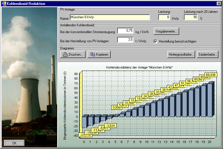 die bei der Herstellung einer PV-Anlage anfallen und die beim Betrieb einer PV-Anlage vermieden werden können. Die zugrunde liegenden Grössen können je nach Land (Strommix) und Modul-Hersteller (manche Firmen arbeiten mit Null-Emissionfabriken) variieren. In Österreich wird beispielsweise die Wasserkraft sehr stark genutzt, so dass hier die CO-2-Minderung geringer ausfällt als beispielsweise in Belgien.